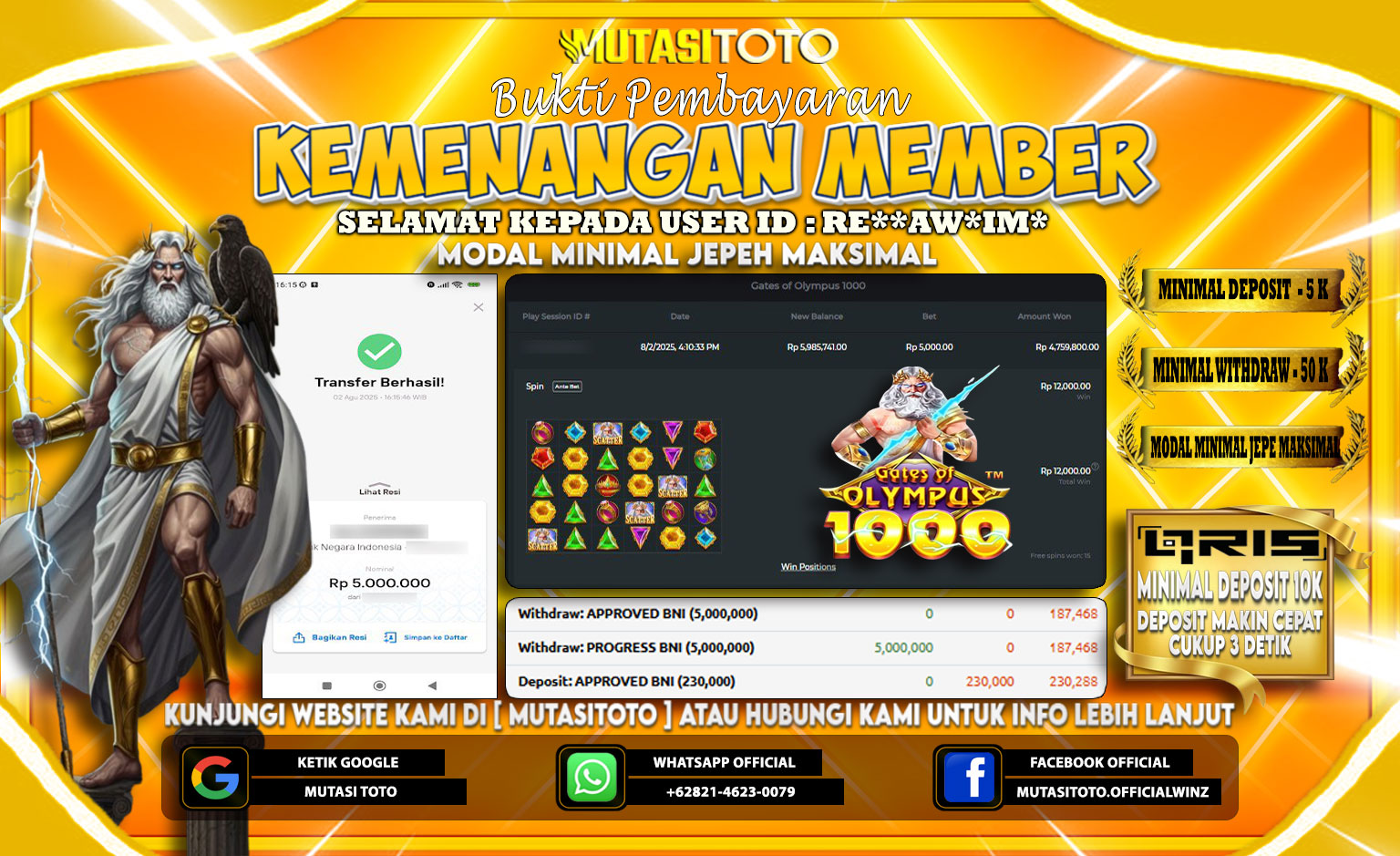 Selamat kepada member kami atas kemenangan besar nya bersama “MutasiToto”