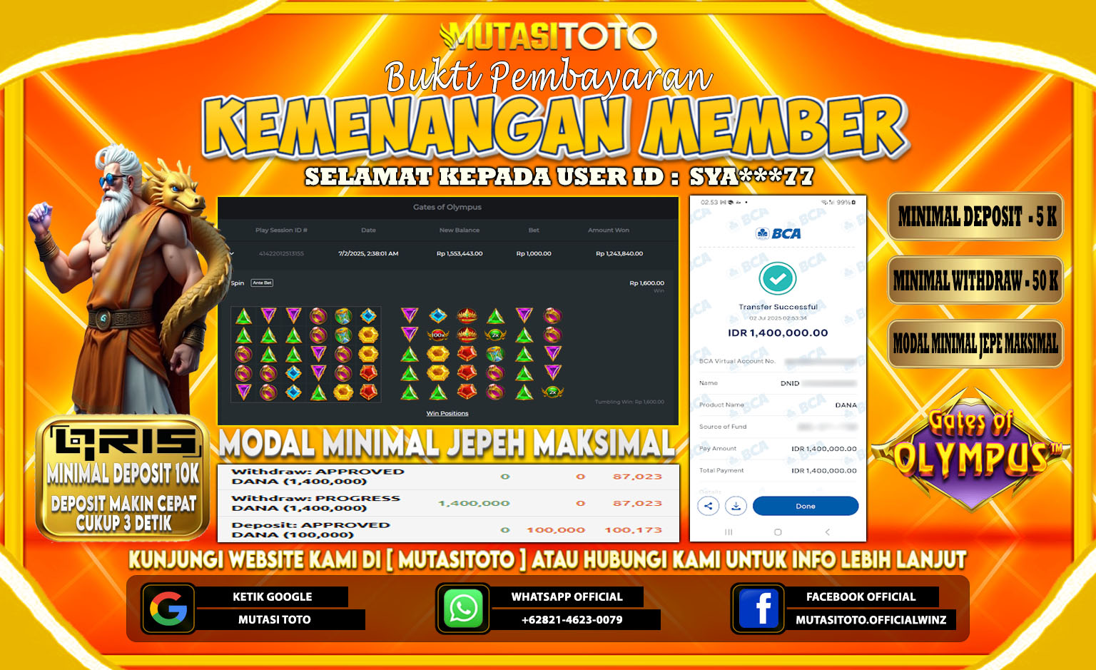 selamat kepada member kami atas kemenangan besar nya bersama “MutasiToto”