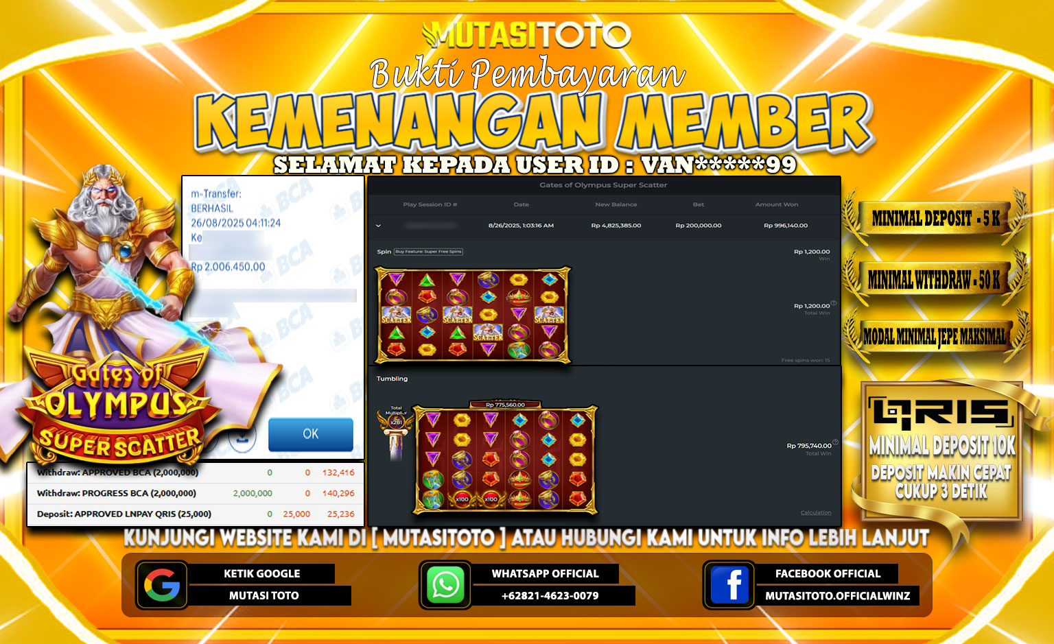 GAME WIN : PRAGMATIC PLAY – GATES OF OLYMPUS SUPER SCATTER