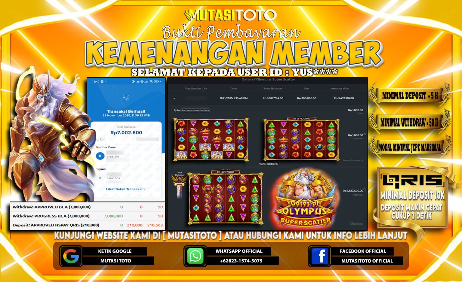 Selamat kepada member kami atas kemenangan besar nya bersama “MutasiToto”