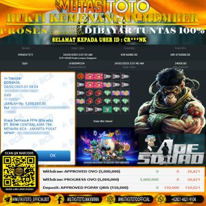 Setelah mengisi formulir withdraw dengan kurung waktu hanya 5 – 10 menit pihak MUTASITOTO sudah melakukan transfer kepada pemilik User id dan dana sudah dapat di cairkan oleh pemenang. Bukti pembayaran yang kami berikan merupakan bukti pembayaran yang SAH / VALID yang langung di dapatkan melaui tanda transfer transaksi dari Bank yang dituju.