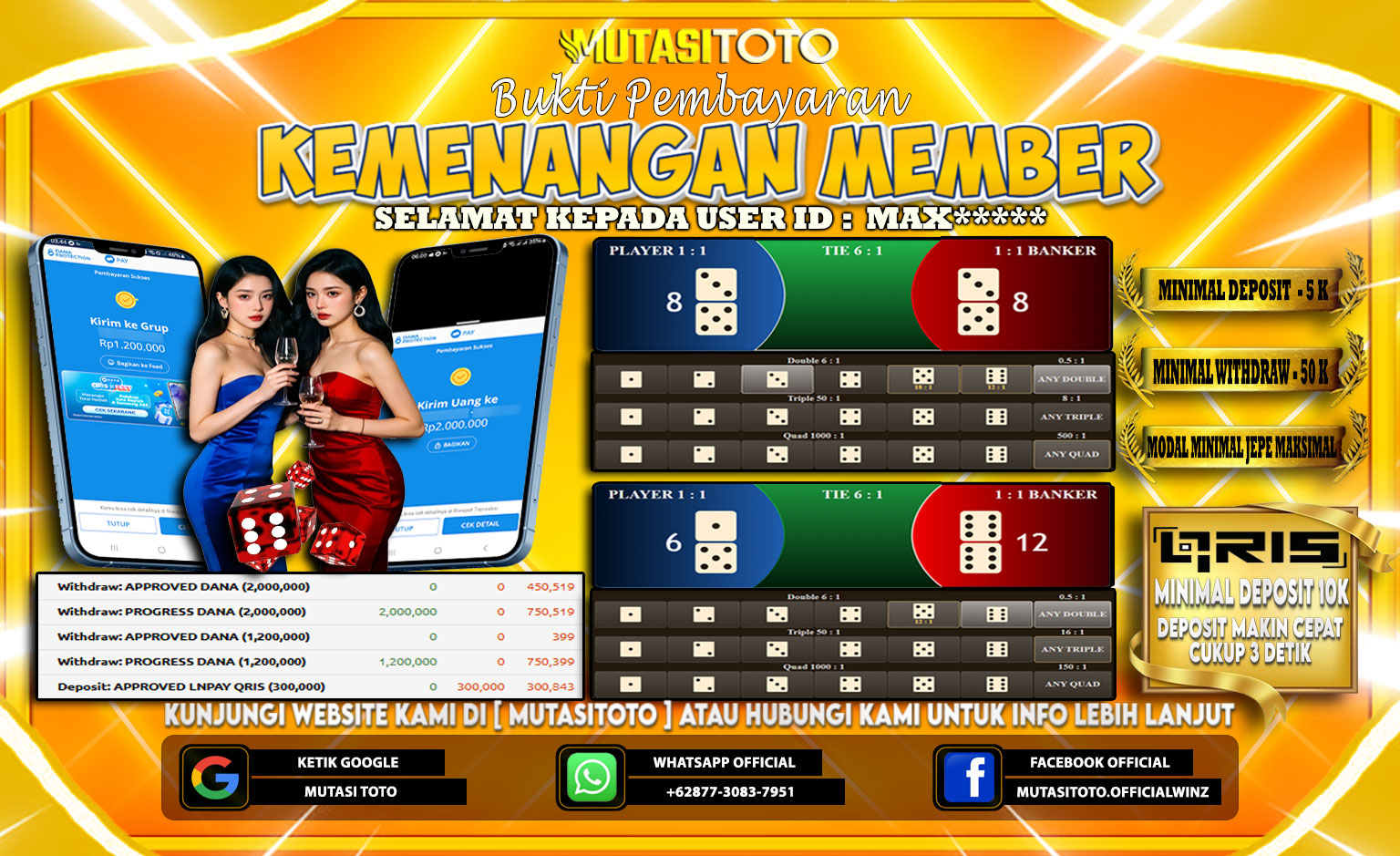Selamat kepada member kami atas kemenangan besar nya bersama “MutasiToto”