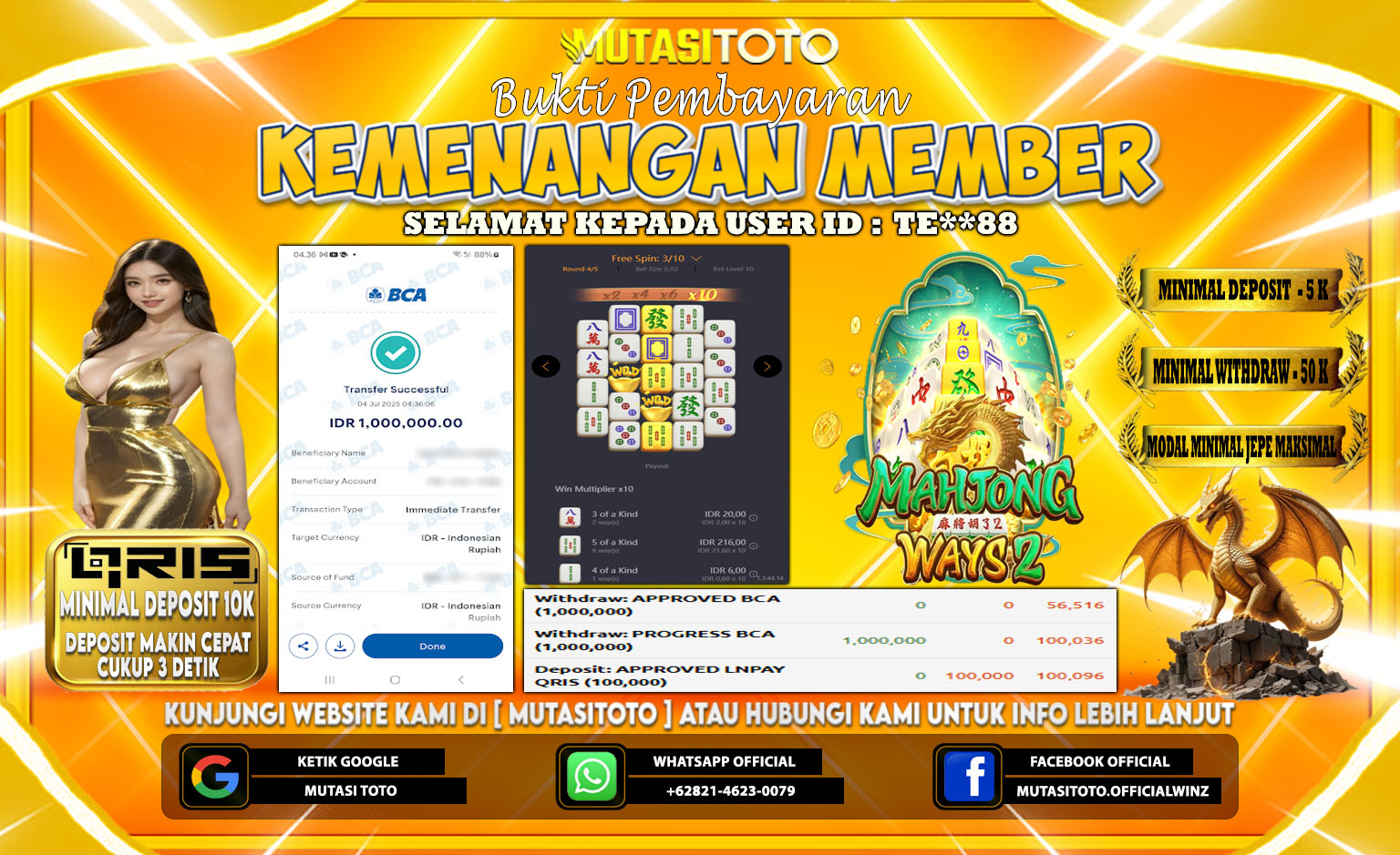selamat kepada member kami atas kemenangan besar nya bersama “MutasiToto”