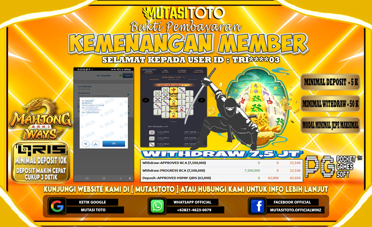 KEMENANGAN : Rp. 7,500,000,-