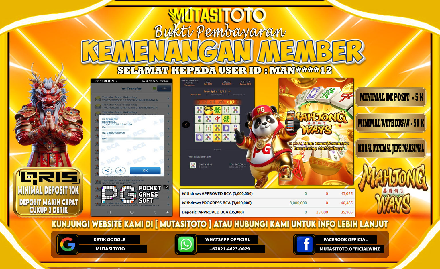 Selamat kepada member kami atas kemenangan besar nya bersama “MutasiToto”
