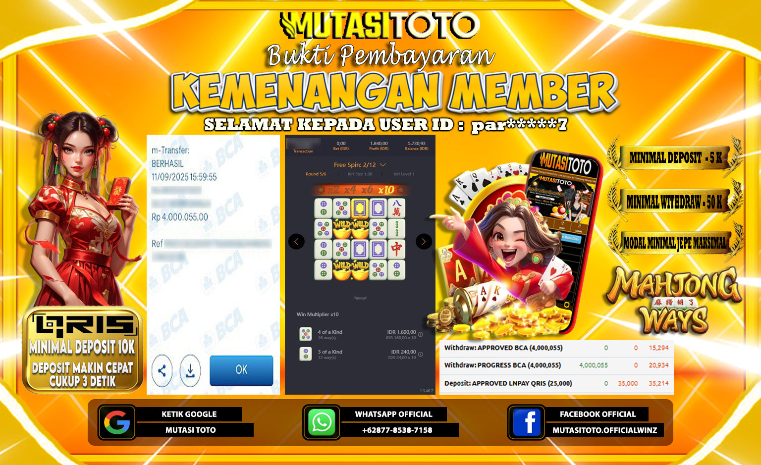 Selamat kepada member kami atas kemenangan besar nya bersama “MutasiToto”