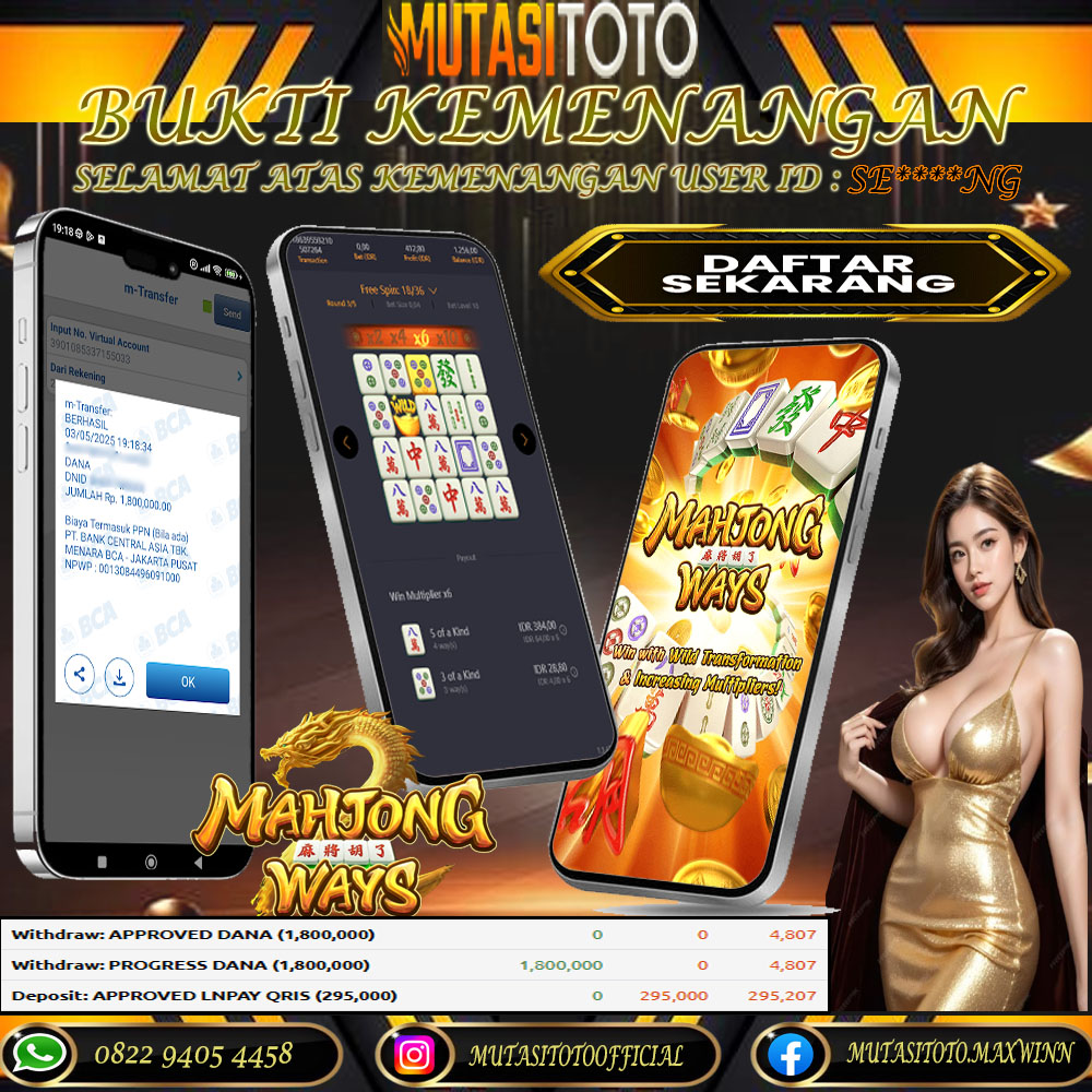 Selamat kepada member kami atas kemenangan besar nya bersama “MutasiToto”