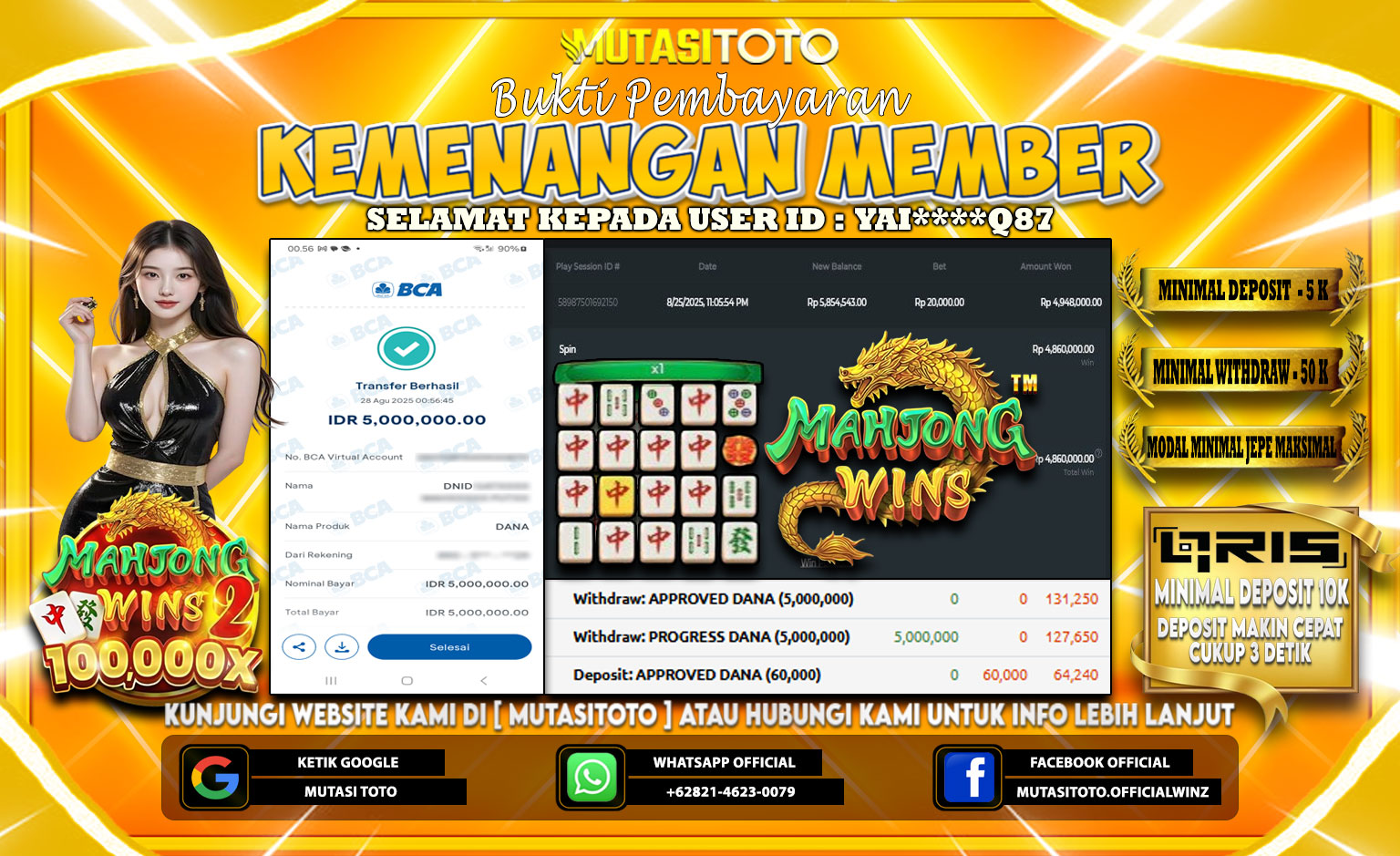 Selamat kepada member kami atas kemenangan besar nya bersama “MutasiToto”