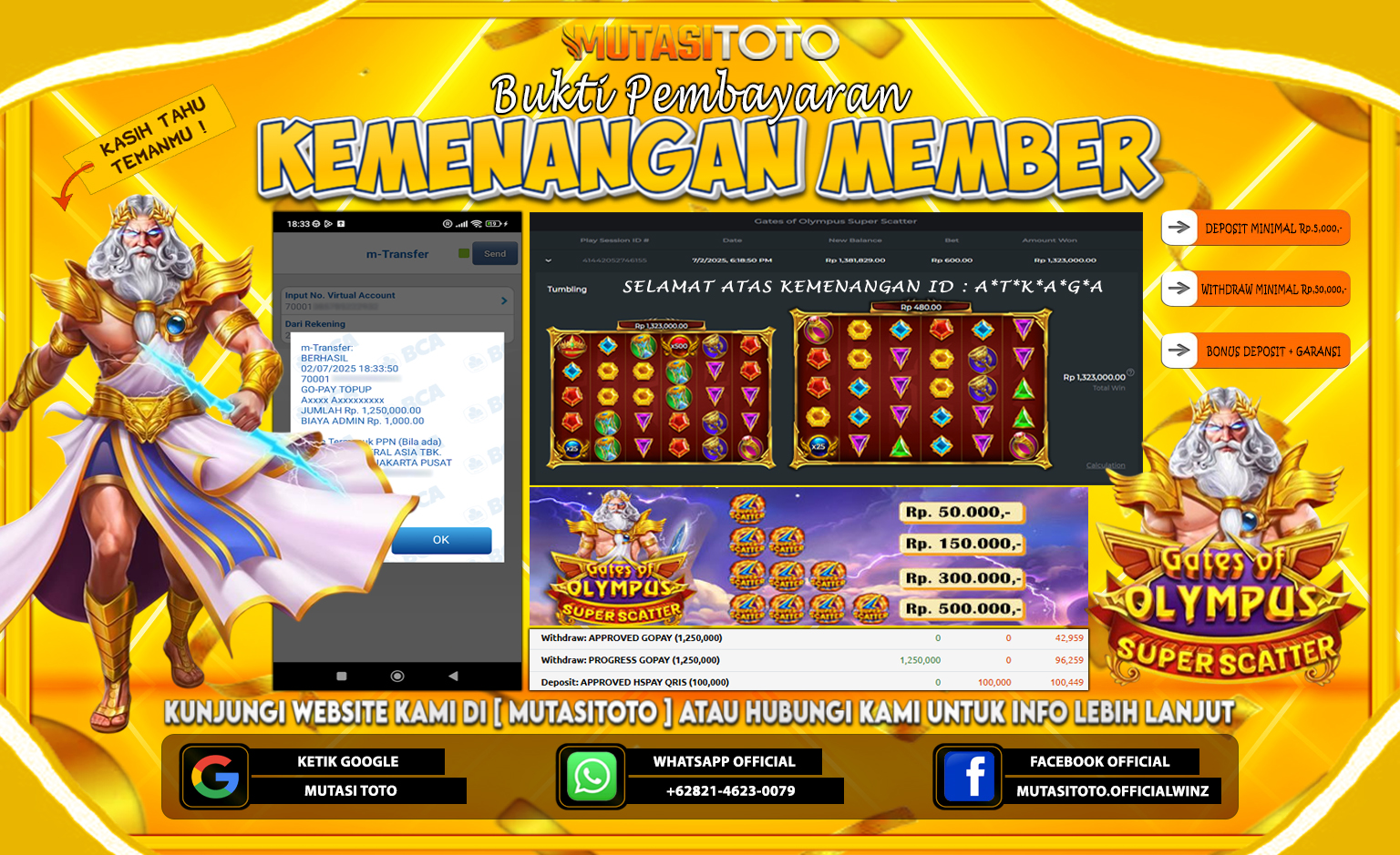 Selamat kepada member kami atas kemenangan besar nya bersama “MutasiToto”