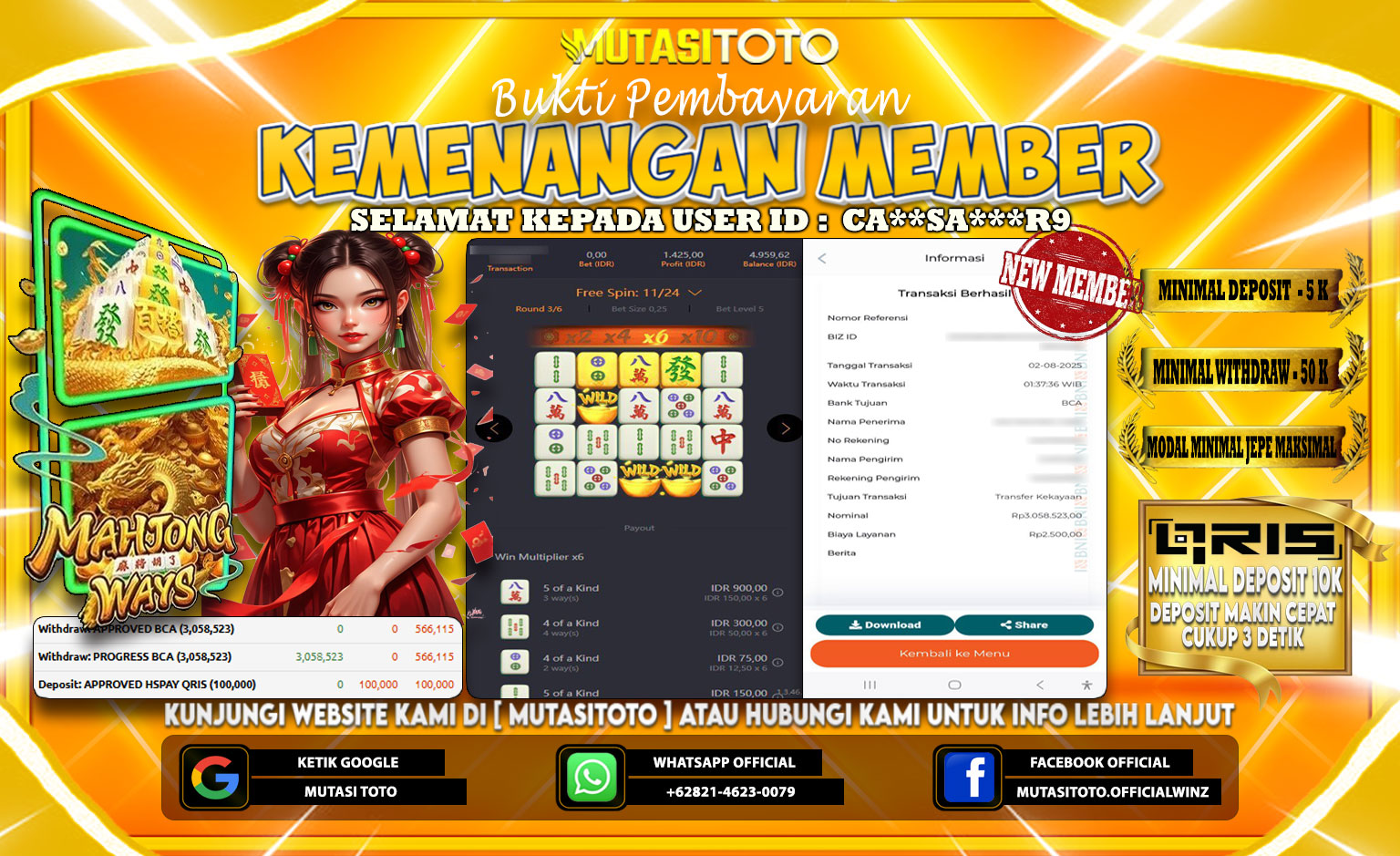 Selamat kepada member kami atas kemenangan besar nya bersama “MutasiToto”