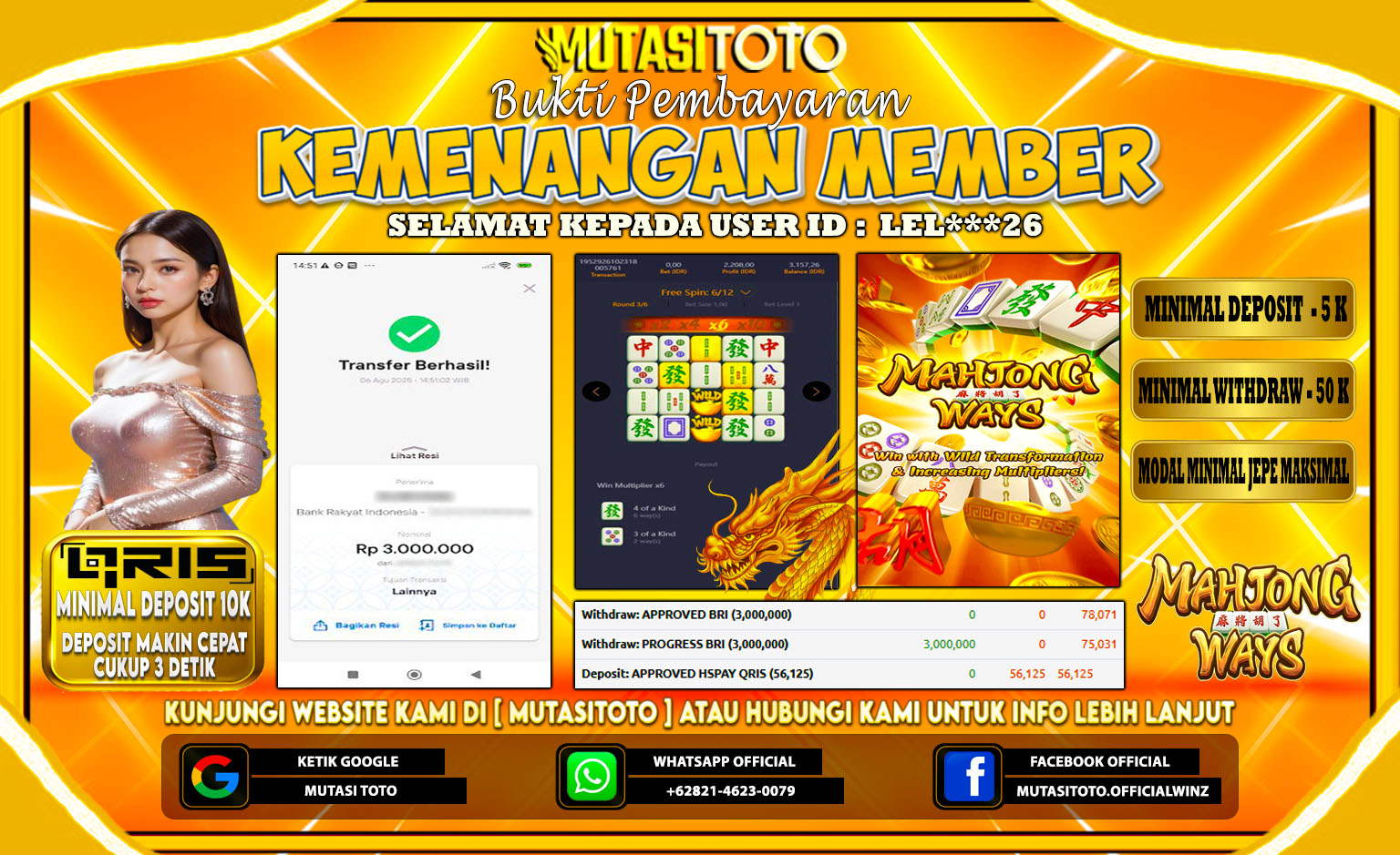 Selamat kepada member kami atas kemenangan besar nya bersama “MutasiToto”