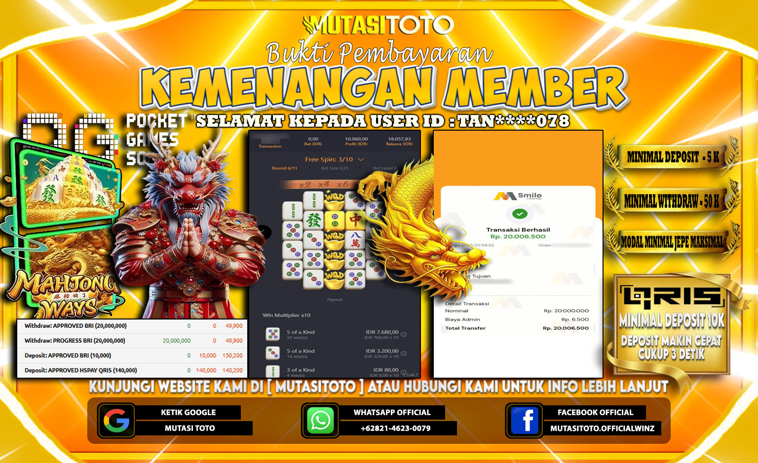 Selamat kepada member kami atas kemenangan besar nya bersama “MutasiToto”