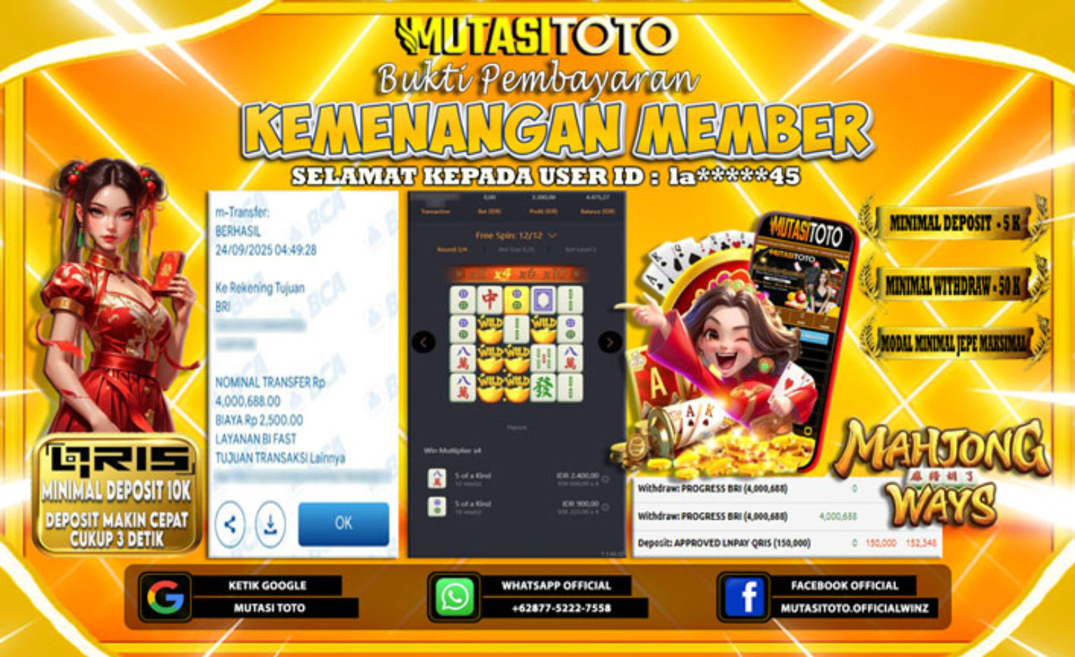 Selamat kepada member kami atas kemenangan besar nya bersama “MutasiToto”