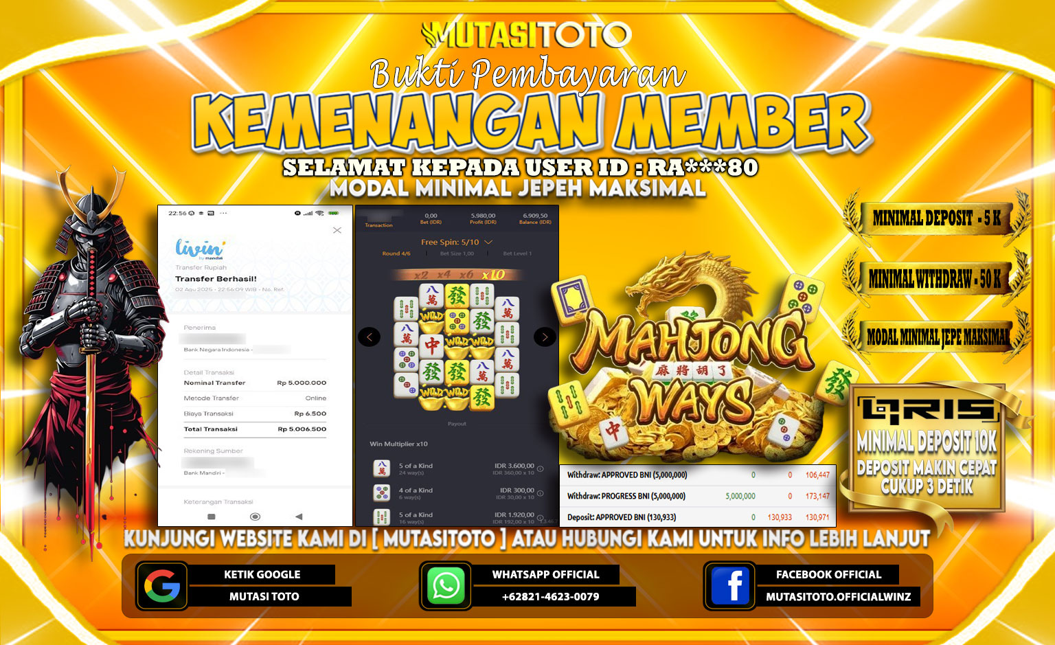 Selamat kepada member kami atas kemenangan besar nya bersama “MutasiToto”