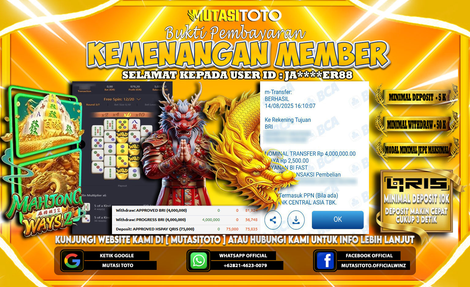 Selamat kepada member kami atas kemenangan besar nya bersama “MutasiToto”