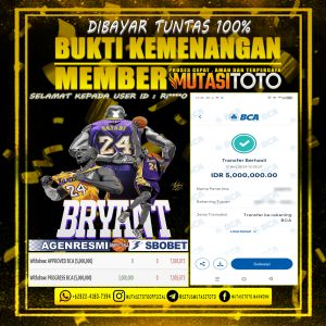 Setelah mengisi formulir withdraw dengan kurung waktu hanya 5 – 10 menit pihak MUTASITOTO sudah melakukan transfer kepada pemilik User id dan dana sudah dapat di cairkan oleh pemenang. Bukti pembayaran yang kami berikan merupakan bukti pembayaran yang SAH / VALID yang langung di dapatkan melaui tanda transfer transaksi dari Bank yang dituju.