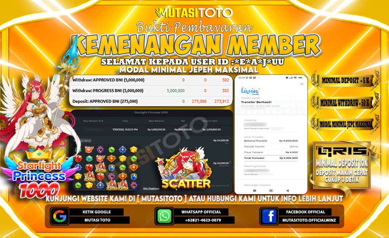 Selamat kepada member kami atas kemenangan besar nya bersama “MutasiToto”
