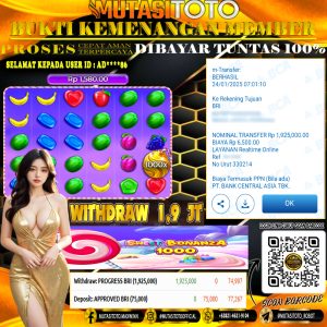 Setelah mengisi formulir withdraw dengan kurung waktu hanya 5 – 10 menit pihak MUTASITOTO sudah melakukan transfer kepada pemilik User id dan dana sudah dapat di cairkan oleh pemenang. Bukti pembayaran yang kami berikan merupakan bukti pembayaran yang SAH / VALID yang langung di dapatkan melaui tanda transfer transaksi dari Bank yang dituju.