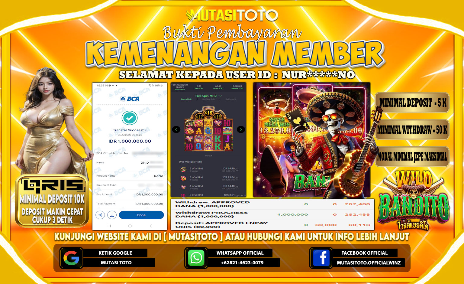 Selamat kepada member kami atas kemenangan besar nya bersama “MutasiToto”