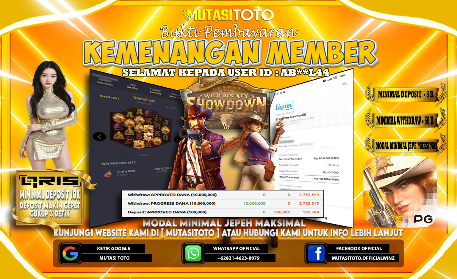 Selamat kepada member kami atas kemenangan besar nya bersama “MutasiToto”