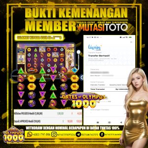 KEMENANGAN MEMBER MUTASITOTO BERMAIN DI GATES OF OLYMPUS 1000