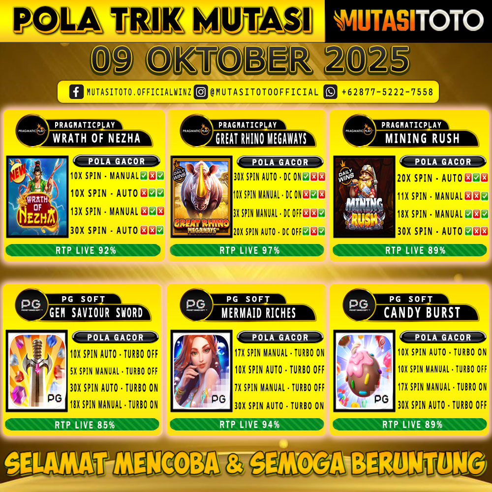 POLA GACOR TERUPDATE 09 OKTOBER 2025 – MUTASITOTO