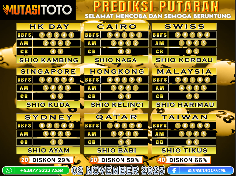 PREDIKSI ANGKA TOGEL “MutasiToto” 02 NOVEMBER 2025