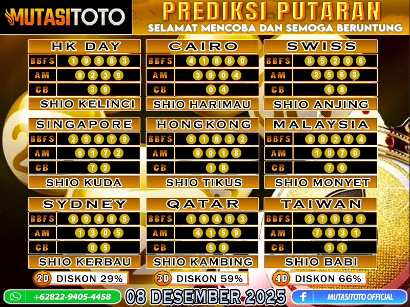PREDIKSI ANGKA TOGEL “MutasiToto” 08 DESEMBER 2025