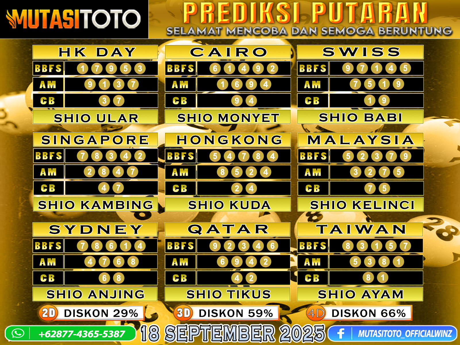 PREDIKSI ANGKA TOGEL “MutasiToto” 18 SEPTEMBER 2025