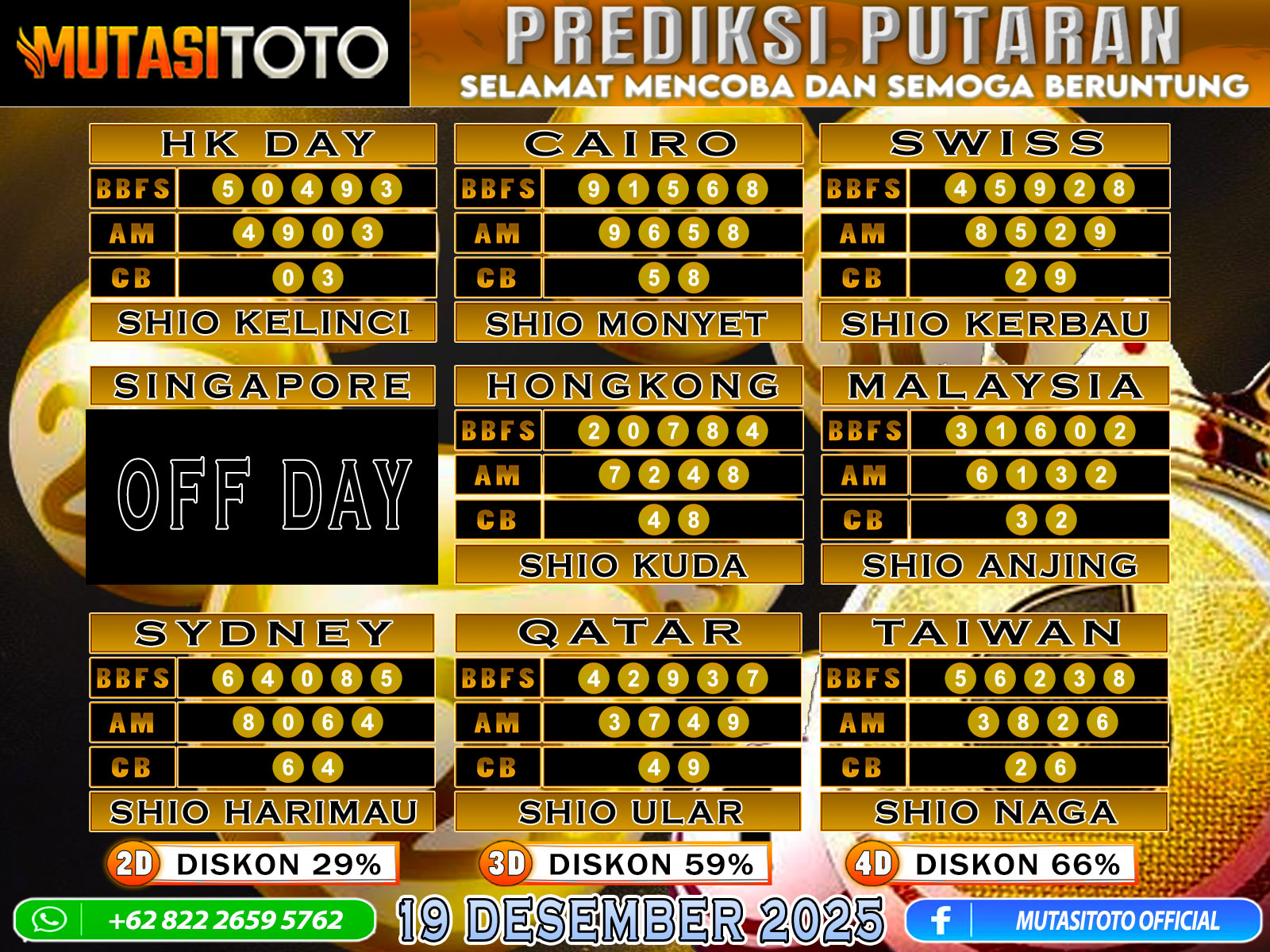 PREDIKSI ANGKA TOGEL “MutasiToto” 19 DESEMBER 2025