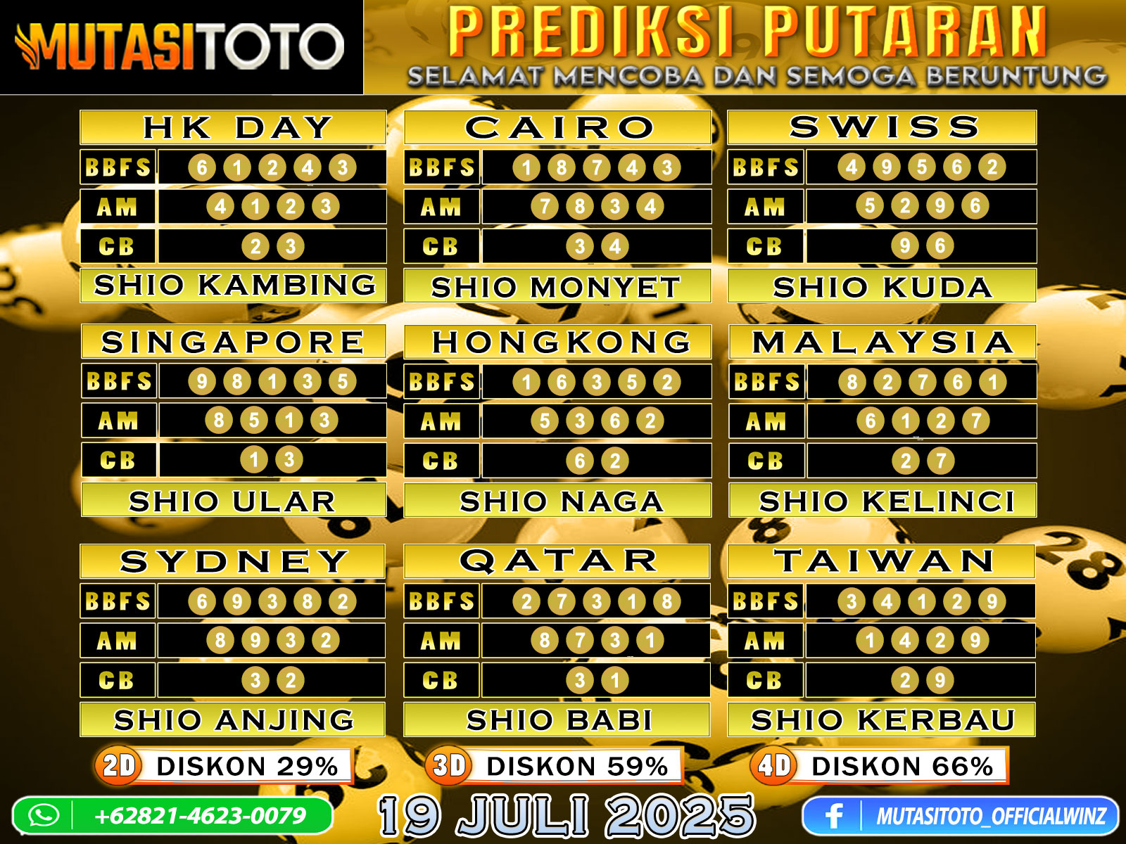 PREDIKSI ANGKA TOGEL “MutasiToto” 19 JULI 2025