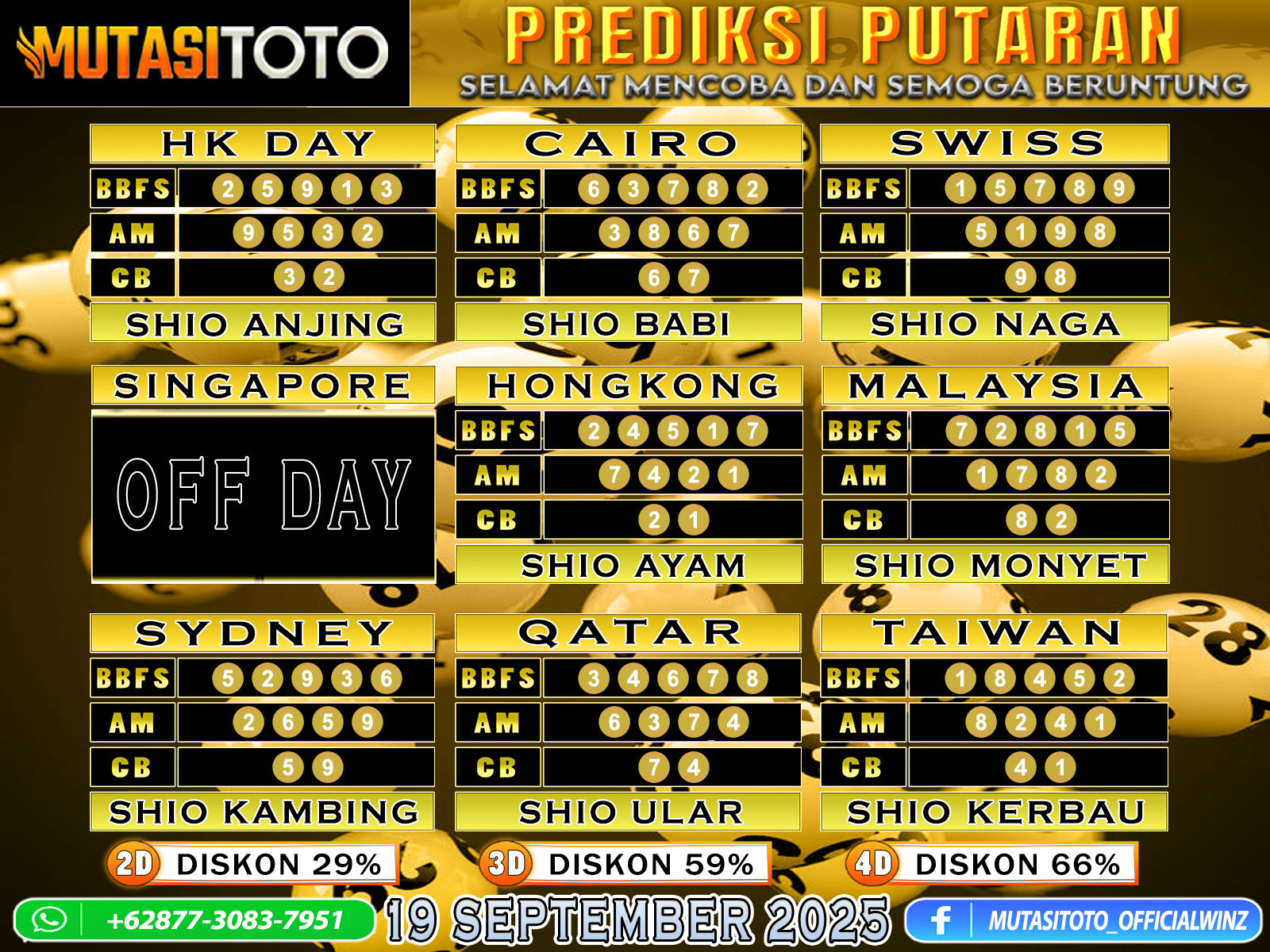 PREDIKSI ANGKA TOGEL “MutasiToto” 19 SEPTEMBER 2025