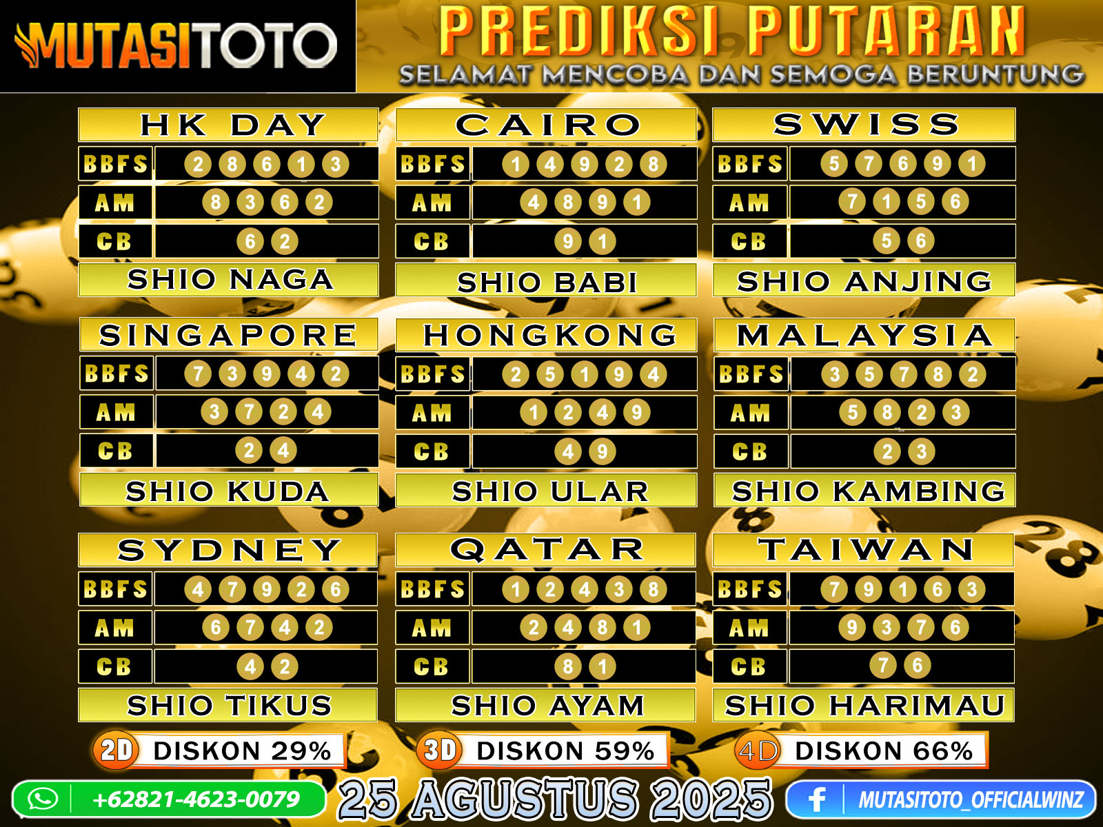 PREDIKSI ANGKA TOGEL “MutasiToto” 25 AGUSTUS 2025