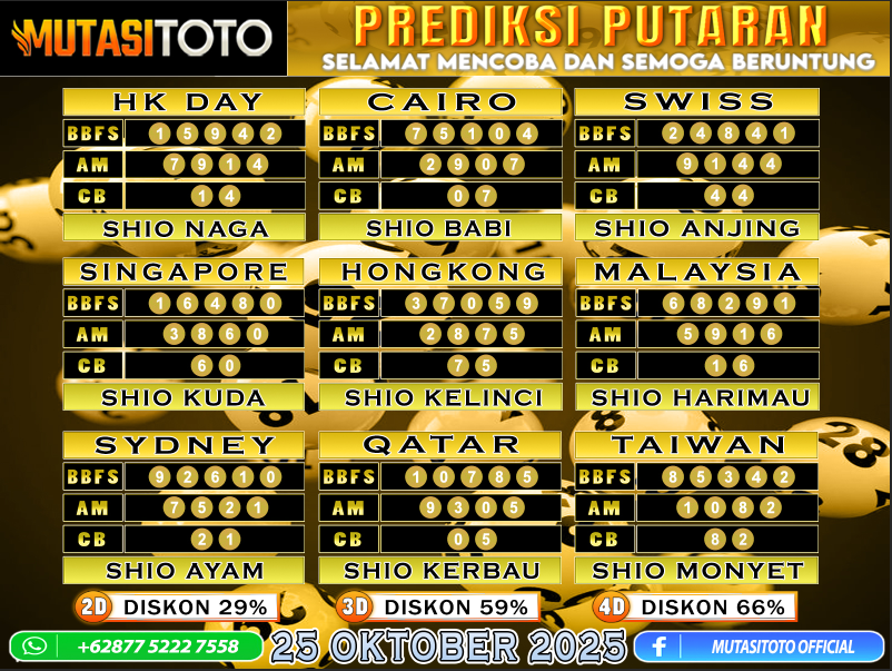 PREDIKSI ANGKA TOGEL “MutasiToto” 25 OKTOBER 2025