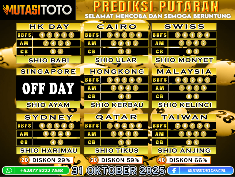 PREDIKSI ANGKA TOGEL “MutasiToto” 31 OKTOBER 2025