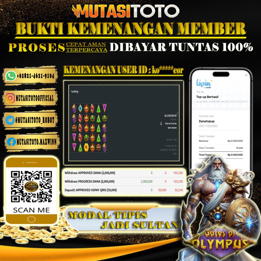 Selamat kepada member kami atas kemenangan besar nya bersama “MutasiToto”