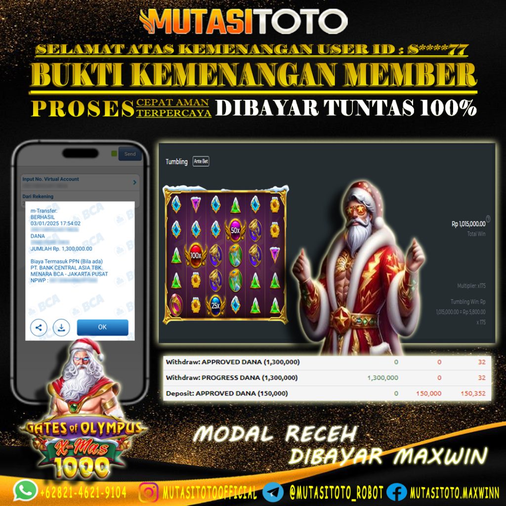 Selamat kepada member kami atas kemenangan besar nya bersama “MutasiToto”