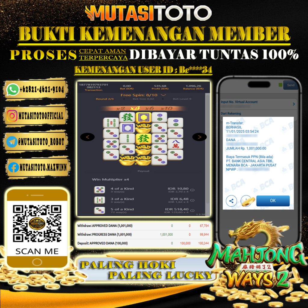 Selamat kepada member kami atas kemenangan besar nya bersama “MutasiToto”