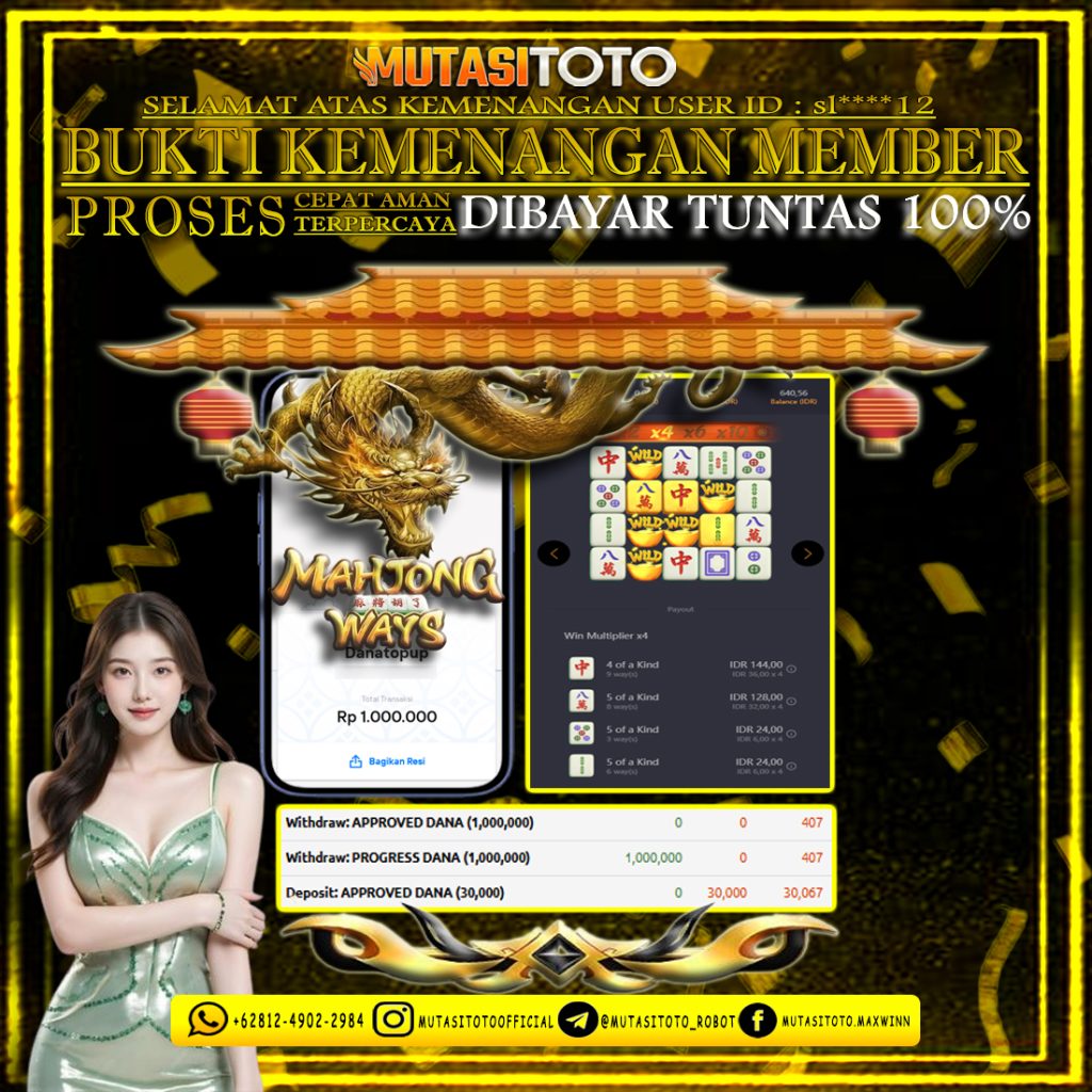 Selamat kepada member kami atas kemenangan besar nya bersama “MutasiToto”