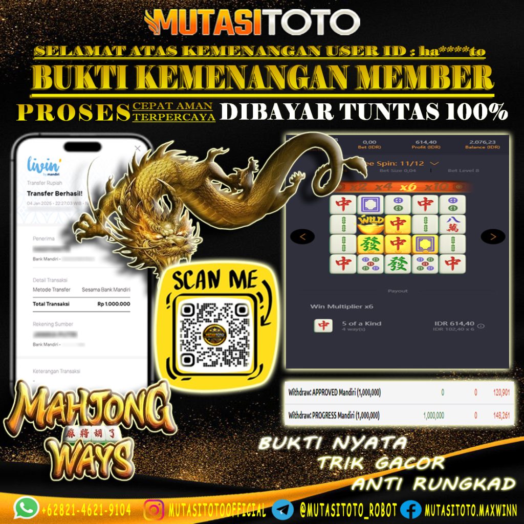 Selamat kepada member kami atas kemenangan besar nya bersama “MutasiToto”