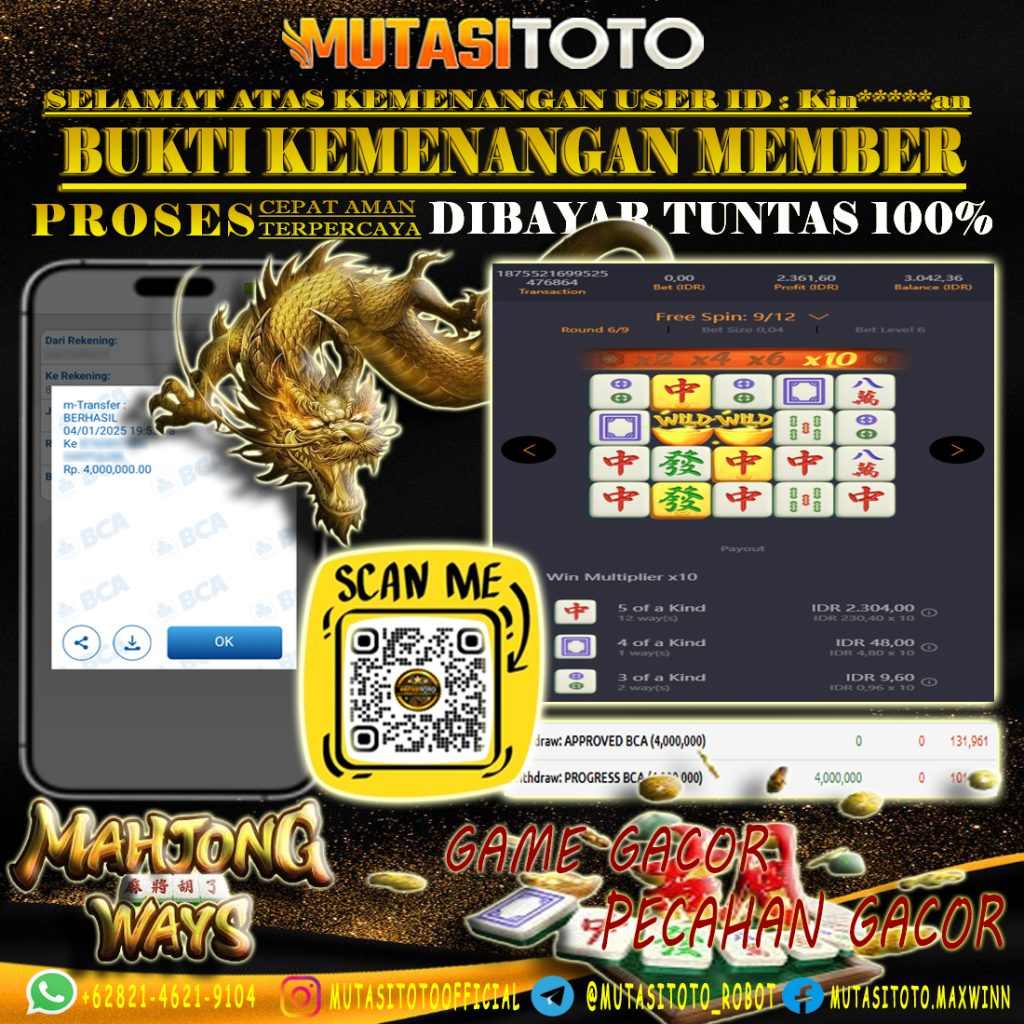 Selamat kepada member kami atas kemenangan besar nya bersama “MutasiToto”